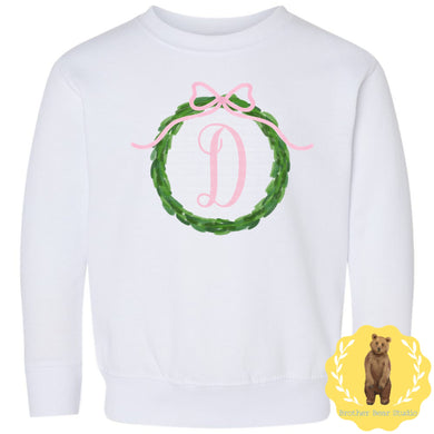 Pink Ribbon Wreath Sweatshirt | Girls | Sweatshirt | Holiday | Wreath | Christmas |