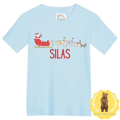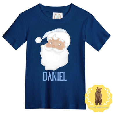 Blue Hat Santa Tee Shirt | Boys | Short Sleeve | Holiday | Long Sleeve |