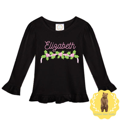 Holly Berry Ruffle Tee Shirt | Girls | Short Sleeve | Holiday | Long Sleeve |
