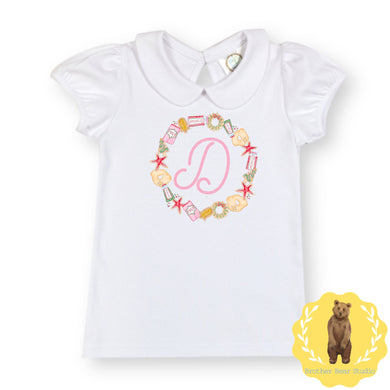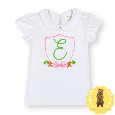 Pink Crest with Gingerbread Peter Pan Collar Tee | Girls | Short Sleeve | Holiday | Long Sleeve |
