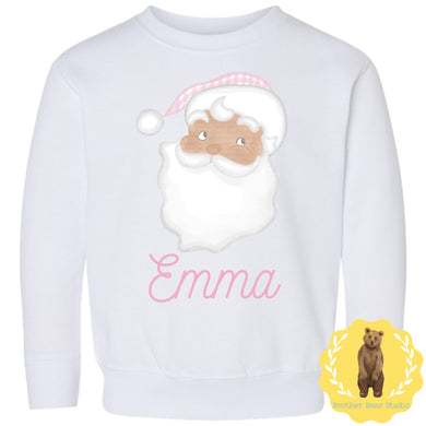 Pink Hat Santa Sweatshirt | Girls | Sweatshirt | Holiday | Wreath |