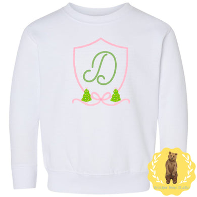 Pink Crest with Christmas Trees Sweatshirt | Girls | Sweatshirt | Holiday | Wreath |