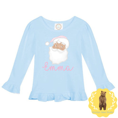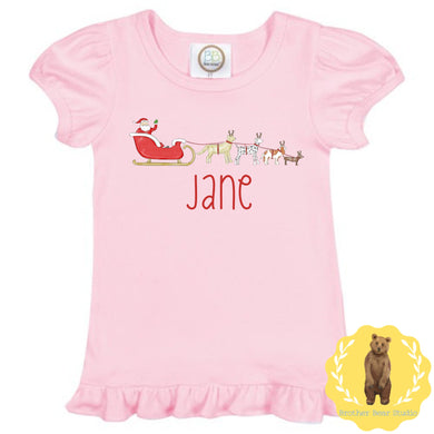 Pink Hat Santa Ruffle Tee Shirt | Girls | Short Sleeve | Holiday | Long Sleeve |