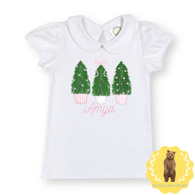 Christmas Tree Trio Peter Pan Collar Tee | Girls | Short Sleeve | Holiday | Long Sleeve |