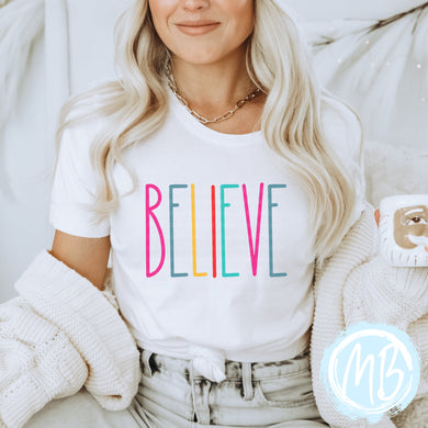 Believe Colorful Tee | Women | Christmas | Santa | Adult |