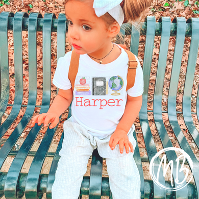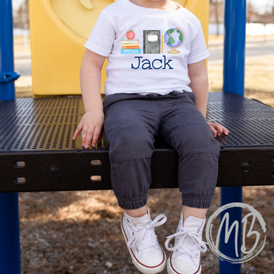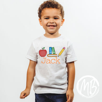 Apple Books & Pencil Trio w/name Tee or Ruffle Tee
