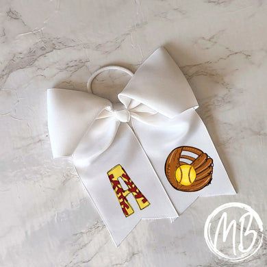 Softball Initial Bow | Hair Bow | Large Bow | Girl's Bow |